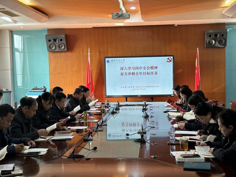 12月25日下午,为深入学习贯彻党的二十届四中全会精神,进一步凝聚思想共识,激发奋进力量,机关第一党支部与马克思主义学院教工党支部在科技大楼505会议室联合开展“深入学习四中全会精神 奋力冲刺全年目标任务”主题党日活动,校党委书记李宏同志参会并全程指导。活动由机关第一党支部书记祝治国同志主持。