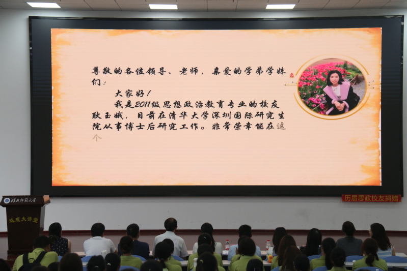 “在马院的日子,是我人生中最宝贵的‘充电期’”。优秀校友耿玉娥、肖易婷以视频的方式为新生们带来了祝福与经验分享。镜头前,她们以真挚的语气回顾了在马院的求学时光——从课堂上的专注思考,到科研中的反复打磨;从社团活动中的成长蜕变,到面对挑战时的咬牙坚持。她们勉励学弟学妹们:“要珍惜校园里的每一寸时光,多读书、勤思考、敢探索,在热爱的领域里深耕,在平凡的日子里积蓄力量,终会遇见更好的自己”。朴实的话语里满是真诚,为新生们点亮了前行的“灯塔”。