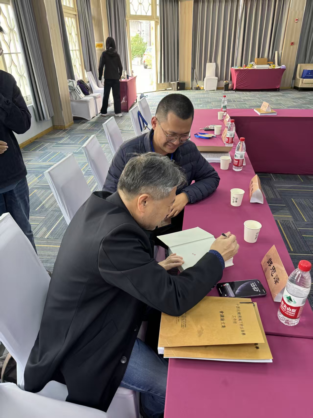 会议间隙,复旦大学的历史学教授、《新经学》主编邓秉元,将其新书《德知之间:孔门经学的合外内之道》赠送给张博士,并现场欣然题签。两人对中华优秀传统文化的现代转化进行了深入的探讨,形成了一个基本共识。