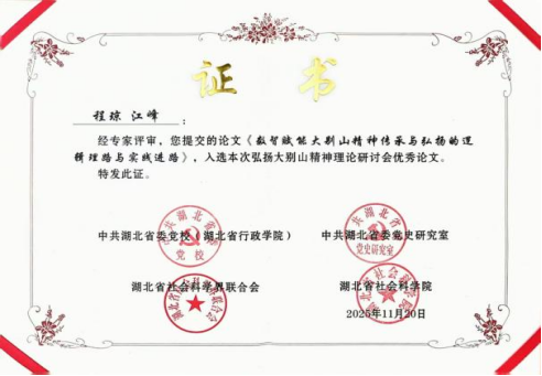 我院教师程琼、江峰合作撰写的《数智赋能大别山精神传承与弘扬的逻辑理路与实践进路》,以及曾佳敏、江峰合作撰写的《为中国式现代化筑牢精神堡垒——大别山精神研究综述》两篇论文,经严格评审脱颖而出,成功入选本次研讨会优秀论文,并受邀现场交流研讨。据悉,本次研讨会聚焦“弘扬大别山精神”核心主题,得到了社会各界的广泛关注与积极响应,共征集到来自省内外机关事业单位、高校、党校、干部学院及科研院所等多领域的论文386篇。经严谨评审,40余篇论文获评优秀论文,形成了一批兼具理论深度、时代特征与实践价值的研究成果。