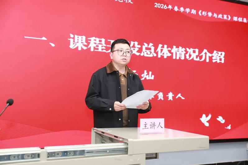 会议伊始,学院教学工作负责人杨灿副教授详细解读了2026年春季学期《形势与政策》课程整体实施方案。他强调,全体教师必须紧扣时代脉搏,坚持以习近平新时代中国特色社会主义思想统领课堂教学,推动党的创新理论与思政育人实践深度耦合,持续优化教学设计、革新授课模式、丰富教学载体,夯实新时代思政教育铸魂育人根基。